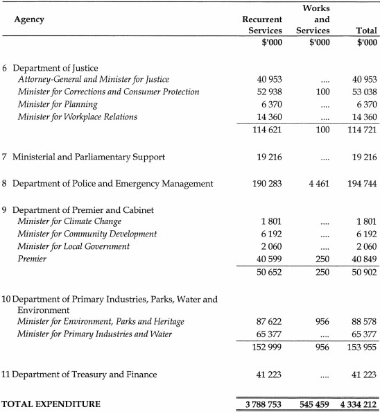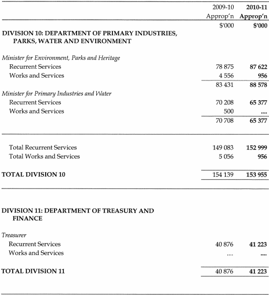 (1) In respect of the financial year ending on 30 June 2011, the Treasurer may (a) issue the sum of $4 334 212 000 out of the Consolidated Fund; and(b) apply that sum for the services of the Government.(2) The sum specified in subsection (1) is appropriated.