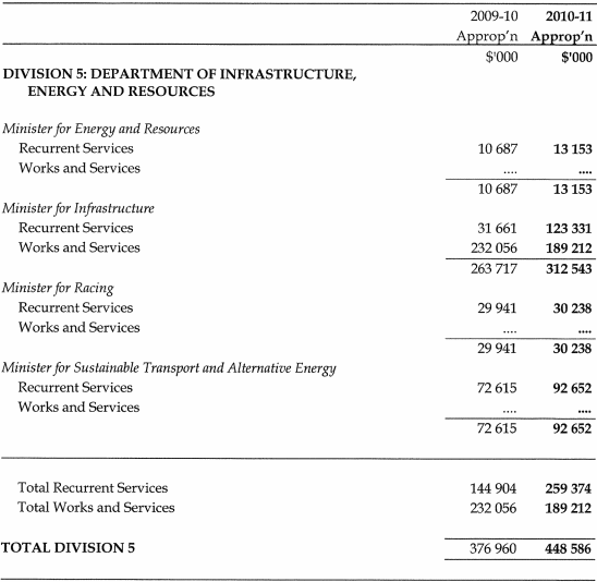 An Act for the appropriation of $4 334 212 000 out of the Consolidated Fund for the service of the financial year ending on 30 June 2011 and to authorise the Treasurer to borrow money on behalf of the State