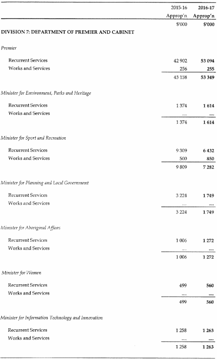 (1) In respect of the financial year ending on 30 June 2017, the Treasurer may (a) issue the sum of $3 960 194 000 out of the Consolidated Fund; and(b) apply that sum for the services of the Government.(2) The sum specified in subsection (1) is appropriated.