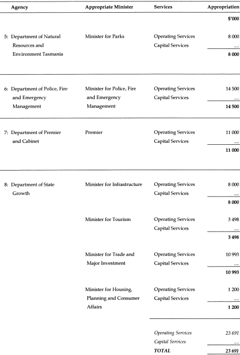 The sum specified in section 4(1)(a) is to be applied for the purposes referred to in Schedule 1 and detailed in either of the following:(a) the agency information in support of the estimates for the financial year ending on 30 June 2025;(b) the information tabled by the Minister in support of Schedule 1 .