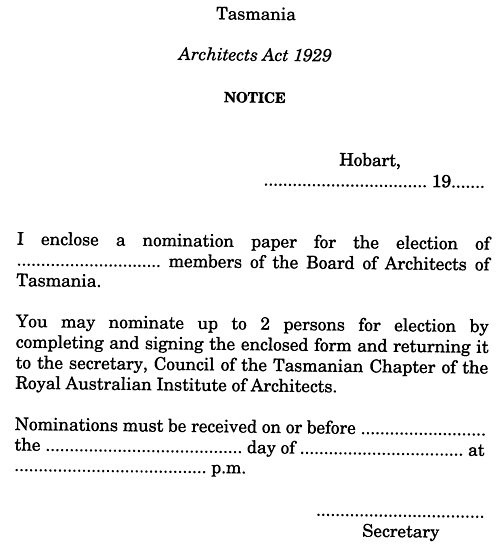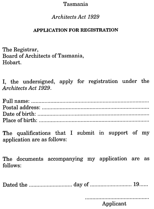 I, the Governor in and over the State of Tasmania and its Dependencies in the Commonwealth of Australia, acting with the advice of the Executive Council and on the recommendation of the Board of Architects of Tasmania, make the following regulations under the Architects Act 1929 .