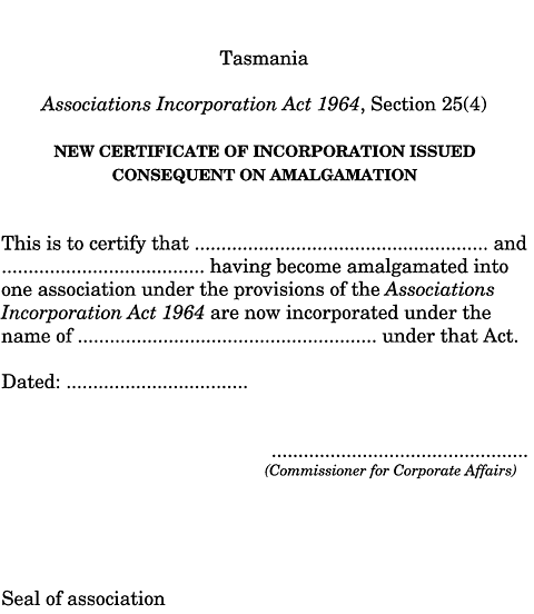 14. Certificate of incorporation of association formed by the amalgamation of associations