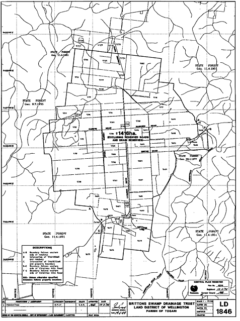 SCHEDULE 1 - Brittons Swamp Water DistrictAll that area of land indicated as bounded by heavy black lines on Plan No. 4248 in the Central Plan Register, a copy of which is set out, by way of illustration only, in Schedule 2 to this proclamation.