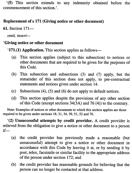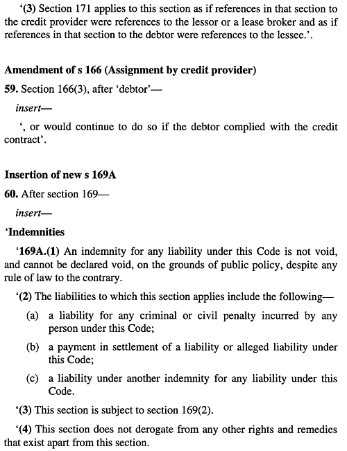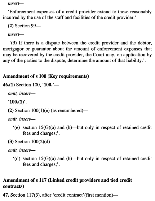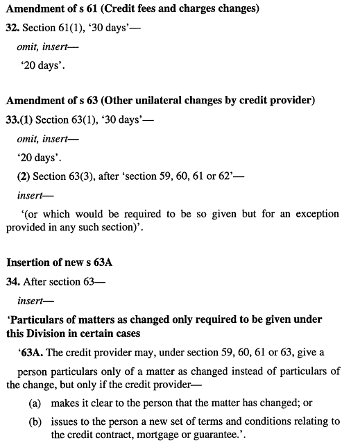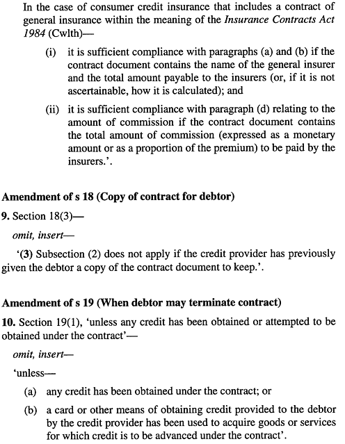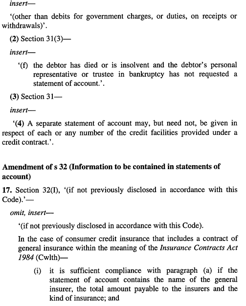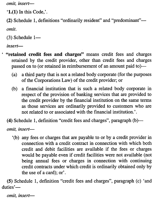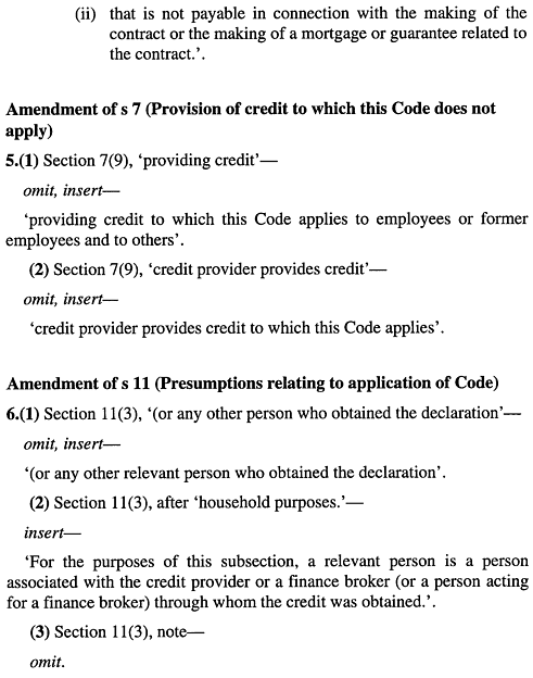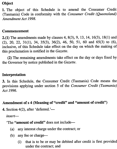 SCHEDULE 1 - Amendments to Consumer Credit (Tasmania) Code