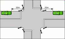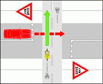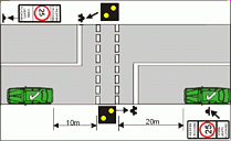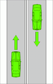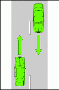 twin red lights means a device showing, in a horizontal or diagonal arrangement, 2 illuminated red discs that flash alternately;twin yellow lights means a device showing, in a horizontal or diagonal arrangement, 2 illuminated yellow discs that flash alternately;two-way road means a road for use by vehicles travelling in opposite directions;