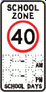 Although an area speed-limit sign on a road into a speed-limited area may indicate a speed-limit of 60 kilometres per hour, a particular length of road in the area may have a school zone sign indicating a 40 kilometres per hour speed-limit for that length of road.