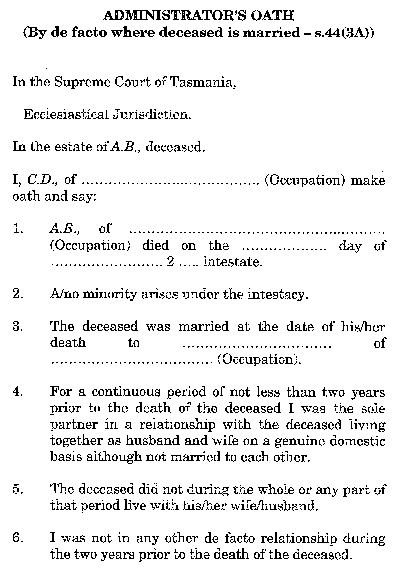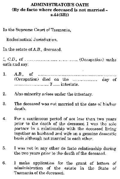 These rules amend the Probate Rules 1936 consequent on recent changes to the Administration and Probate Act 1935 which accorded de facto spouses certain rights of succession in cases of intestacy by (a) providing that where a person dies wholly intestate a de facto spouse has the same priority of right to a grant of administration as a legal spouse; and(b) prescribing new forms of administrator's oath.