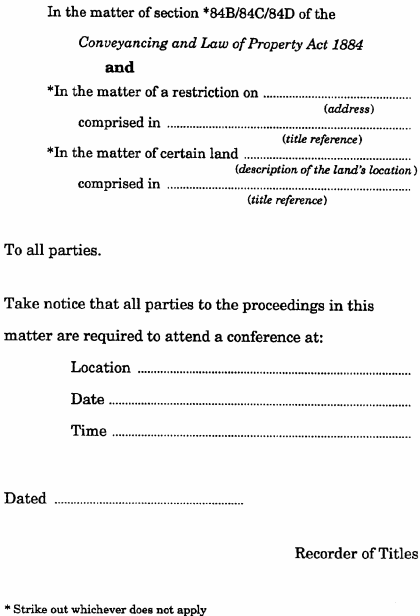 If the Recorder wishes to hear evidence or argument in the proceedings on an application, he or she must give notice to all parties in accordance with Form 10 unless the place, date and time have been notified to all parties at an earlier conference or hearing.