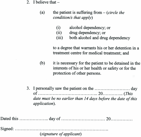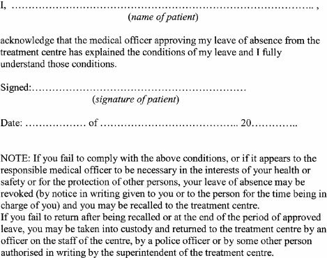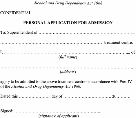 These regulations (a) prescribe forms for an application for admission to, and leave of absence from, a treatment centre; and(b) make provision in respect of applications for an order of discharge from a treatment centre; and(c) are made consequentially on the repeal of the Alcohol and Drug Dependency Regulations 1999 under section 11 of the Subordinate Legislation Act 1992 .
