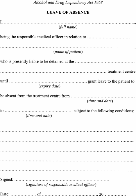 For the purposes of section 45(1) of the Act, a leave of absence form is to be in accordance with Form 3.
