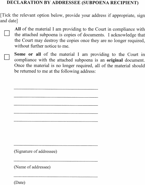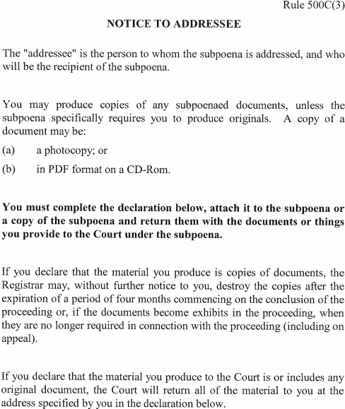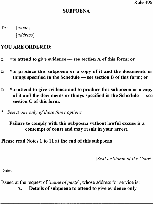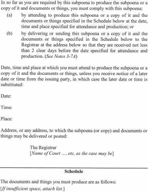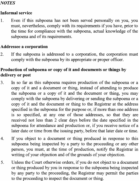 These Rules of Court amend the Supreme Court Forms Rules 2000 by (a) updating the titles used in several forms for the judges and the Associate Judge; and(b) inserting a form for a notice and declaration to be attached to a subpoena; and(c) making minor consequential amendments.
