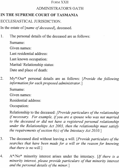 Part III of the Appendix to the Principal Rules is amended by omitting Forms XXII, XXIIA and XXIIB and inserting the following form: