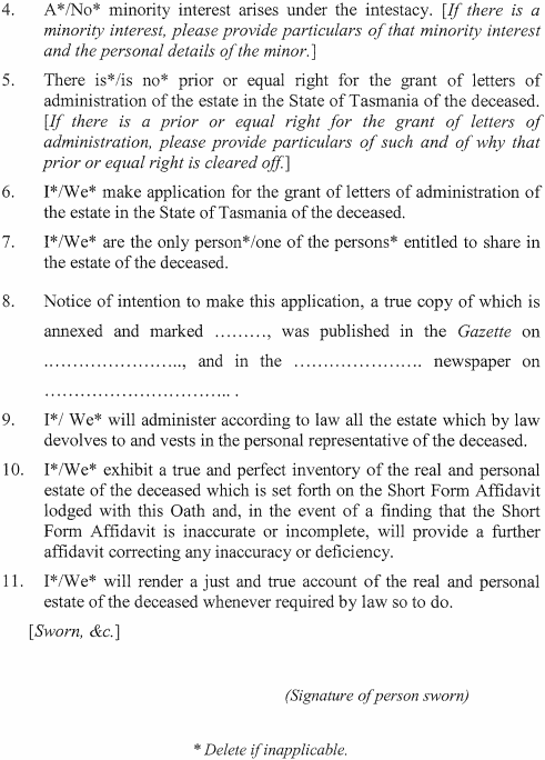 (a) if the gross value of the estate in Tasmania as stated in the oath is less than $50 000