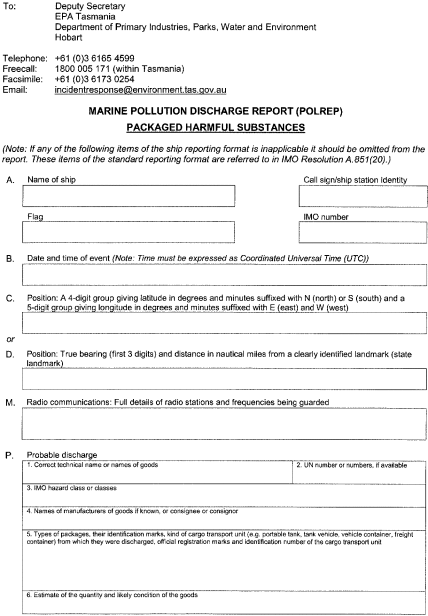 For the purposes of section 25I(1) and (3) of the Act, the prescribed manner in which the master of a ship must notify a prescribed officer of an incident in relation to a ship is by a message that (a) commences with the code letters "POLREP" and the name, IMO number and radio call-sign of the ship; and(b) is conveyed to the prescribed officer, using the contact information for the prescribed officer published by the Department, by (i) telephone; or(ii) radio; or(iii) email.