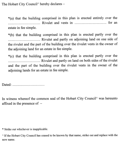 (1) A building title plan must (a) state the name of any body corporate to be formed in relation to the plan and its address for service; and(b) if parking easements are created on the building title plan (i) delineate the parking bays; and(ii) define or describe the rights of access to be conferred by the easements; and(iii) define any other easements and covenants (other than statutory easements) that are to be created on registration of the plan and to which any part of the site is to be subject; and(c) contain any other information and features required by the Recorder.(2) If a building title plan is divided into lots, it must (a) define the boundaries of each lot; and(b) show the approximate area of each lot; and(c) state the unit entitlement of each lot, if applicable; and(d) include a drawing illustrating the lots and distinguishing them by numbers or other symbols.(3) If a lot on a building title plan is part of a building, the plan may define the boundaries of the lot by reference to the boundary structures without necessarily delineating the boundaries, or showing the dimensions, of the lot.(4) A building title plan must be endorsed with, or be accompanied by, a certificate of a registered surveyor certifying that the building or buildings shown on the plan are within the boundaries of the site or that any encroachment beyond those boundaries is properly authorised according to law.(5) If a site comprising a building title plan is part of a piece of land that is subject to a highway adjoining the site, both the external boundary of the site and the boundary of the piece under or over the highway may be shown on the plan.