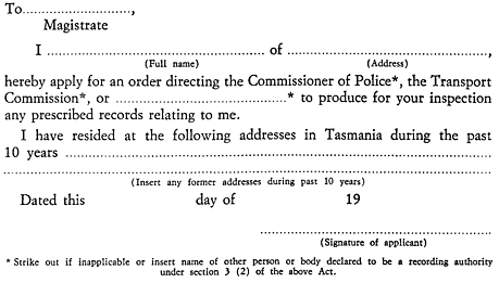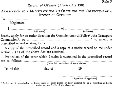 In these rules, unless the contrary intention appears the Act means the Records of Offences (Access) Act 1981 ;application means an application under section 8 of the Act to a magistrate for (a) an order for the production of prescribed records; or(b) an order for the correction of a prescribed record;clerk means the clerk of petty sessions with whom an application is lodged under rule 6 ;hearing means the hearing of an application.