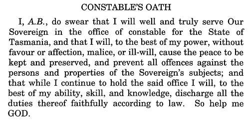 (1)  Any person appointed to be a police officer shall not be capable of acting in any way as such officer until he shall have taken and subscribed the oath set forth in Form 1 in Schedule 2 .