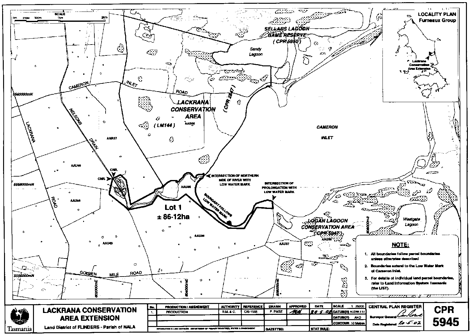 PART 3 - Lackrana Conservation AreaAll that land comprising about 86.12 hectares shown bounded as indicated by a heavy black line on Plan 5945 in the Central Plan Register, a reduced copy of which is included by way of illustration only, in Part 4 of Schedule 2 to this proclamation.
