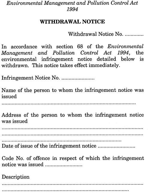 Environmental Management and Pollution Control (Infringement Notices) Regulations 1996