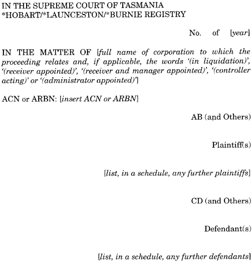 Form 2 - Originating process[Schedule 1 Amended by S.R. 2001, No. 44, Applied:25 Apr 2001] [Schedule 1 Amended by S.R. 2004, No. 55, Applied:21 Jul 2004]