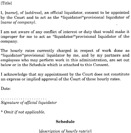 Form 8 - fldrslt Consent of liquidator/provisional liquidator[Schedule 1 Amended by S.R. 2004, No. 55, Applied:21 Jul 2004] [Schedule 1 Amended by S.R. 2004, No. 119, Applied:15 Dec 2004]