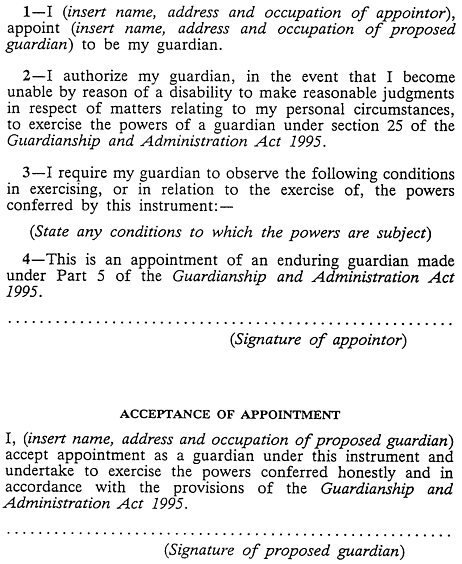 Form 1 - Appointment of Enduring Guardian[Schedule 3 Amended by No. 4 of 2000, s. 18, Applied:28 Apr 2000]
