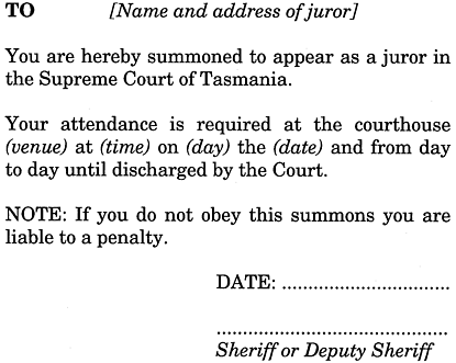 [Section 28 Substituted by No. 84 of 1957, s. 8 ][Section 28 Subsection (3) omitted by No. 50 of 1966, s. 8 ][Section 28 Substituted by No. 39 of 1998, s. 8, Applied:18 Dec 1998](1) On receipt of a precept for the return of jurors for the trial of criminal issues, civil issues or for the assessment of damages, the Sheriff must, in accordance with the regulations, summon the number of jurors required to be summoned by the precept.(2) The names of jurors summoned in respect of the precept are to be determined (a) by ballot; or(b) by a computer that is programmed to make random selection from the names of all jurors included on the jury list for the appropriate year, excluding the names of those who have previously been summoned for jury service in that year.(3) If any person whose name is selected is dead or absent from Tasmania or incapable of serving, or exempt from serving, as a juror, the Sheriff may select and summon an additional juror as required from the annual jury list in accordance with this section.