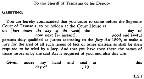 [Section 27 Substituted by 20 Geo. V No. 100, s. 2 ][Section 27 Amended by 25 Geo. V No. 78 ](1) [Section 27 Subsection (1) amended by No. 39 of 1998, s. 7, Applied:18 Dec 1998] Whenever jurors are required for the trial of criminal issues, civil issues or for the assessment of damages in the Supreme Court a judge may, and is hereby directed to, issue a precept under his hand in the form IV in Schedule II , directed to the Sheriff, requiring him to summon so many jurors as the judge may think sufficient for the occasion.(2) Every such precept shall specify the time and the place where attendance of such jurors is required, and shall be issued to the Sheriff 14 clear days before the time so specified.