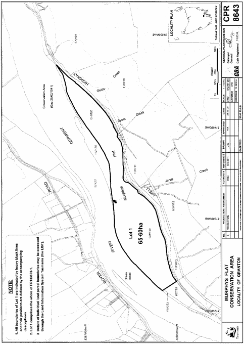 *Note: The area of land at Granton was acquired by the Governor in 2001 for a public purpose as a conservation area within the meaning of the National Parks and Wildlife Act 1970. On the commencement of the Nature Conservation Act 2002, the area of land was taken to be reserved land in the class of conservation area under that Act.