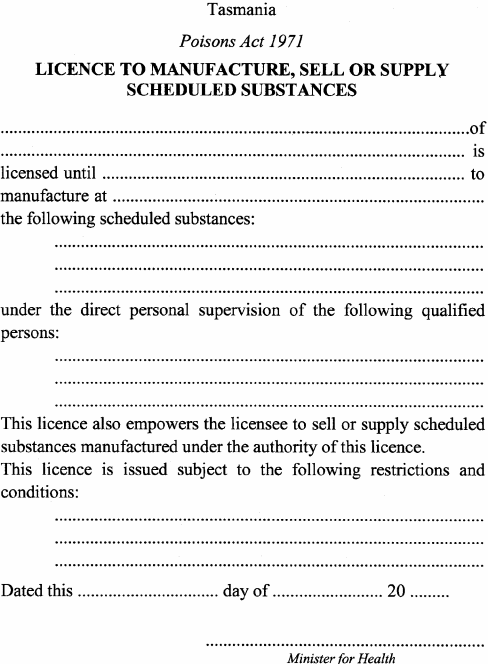 (1) An application for a licence (a) to carry on business as a manufacturing chemist or to make, refine or prepare a narcotic substance is to be made by a qualified person and accompanied by the relevant fee specified in item 1 of Schedule 9 ; and(b) to carry on business as a wholesale chemist is to be accompanied by the relevant fee specified in item 2 of Schedule 9 .(2) A licence (a) to carry on business referred to in subregulation (1)(a) is to be in accordance with Form 1; and(b) to carry on business referred to in subregulation (1)(b) is to be in accordance with Form 2.(3) For the purposes of (a) section 16(2)(a) of the Act, Form 1 is prescribed; and(b) section 16(3)(a) of the Act, Form 2 is prescribed.(4) In subregulation (1)(a) qualified person means (a) a medical practitioner, pharmaceutical chemist, dentist or veterinary surgeon; or(b) a person who holds a degree or diploma approved by the Minister; or(c) a person approved by the Secretary; or(d) a person who is, or is eligible to be (i) a Fellow or Associate of the Royal Australian Chemical Institute; or(ii) a Fellow, Associate or Licentiate of the Royal Institute of Chemistry; or(e) where the carrying out of a process involving a prohibited plant is only preparatory to the use of that plant for the manufacture of a narcotic substance, a person approved by the Minister.