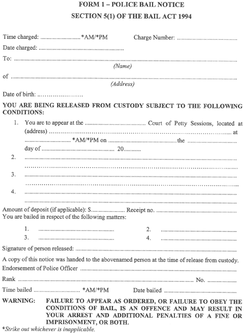Form 1 - Police Bail Notice