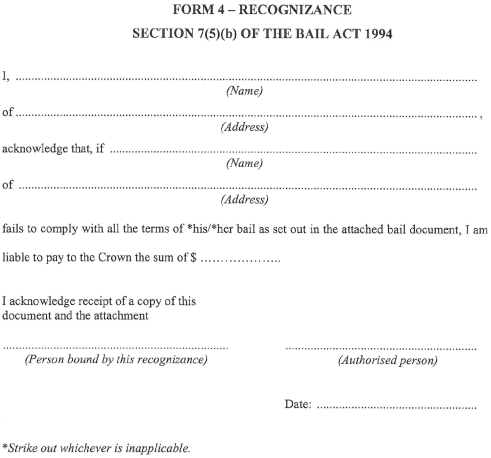 Form 4 - Recognizance