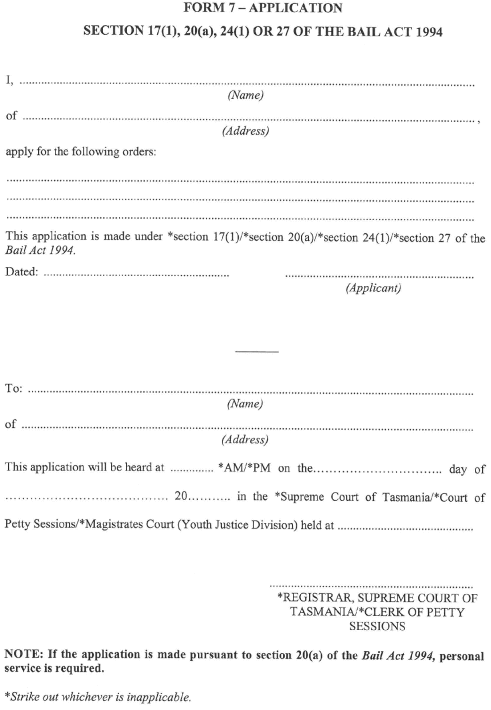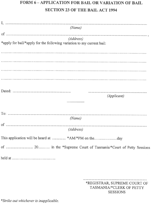 Form 6 - Application for Bail or Variation of Bail