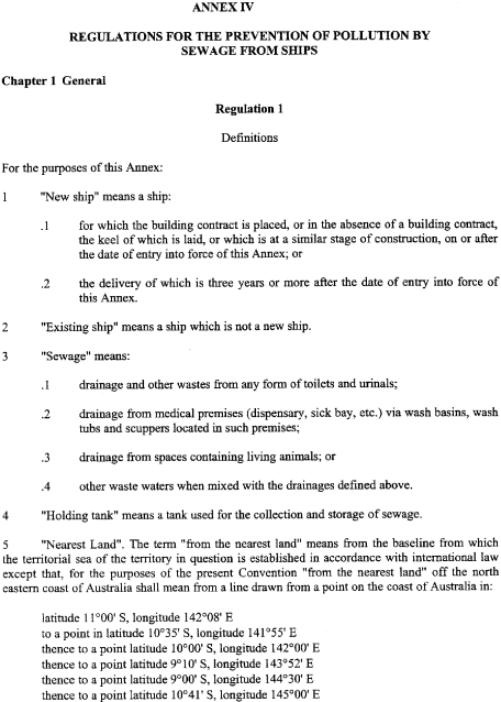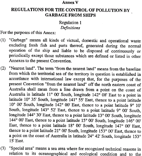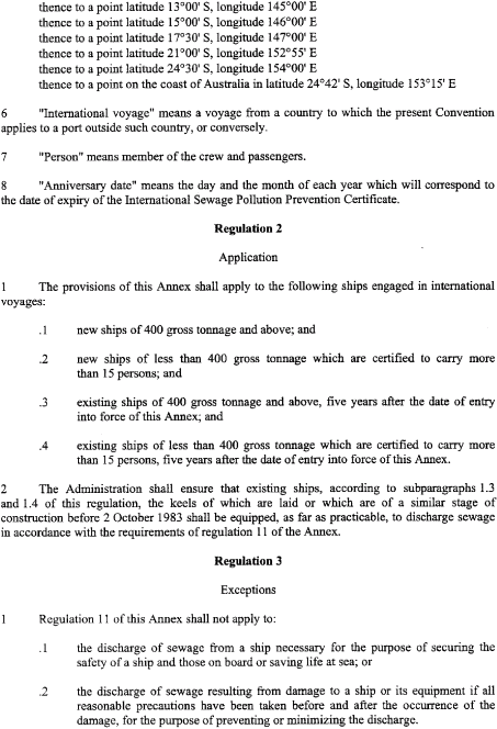 [Section 3 Subsection (1) amended by No. 81 of 2000, s. 4, Applied:13 Dec 2000] the 1973 Convention means the International Convention for the Prevention of Pollution from Ships, 1 973, as corrected by the Proces-Verbal of Rectification dated 13th June 1978 (a copy of the English text of which, apart from Annexes IV and VI, as so corrected, is set out in Schedule 1 ), as affected by any amendment, other than an amendment not accepted by Australia, made under Article 1 6 of the Convention;