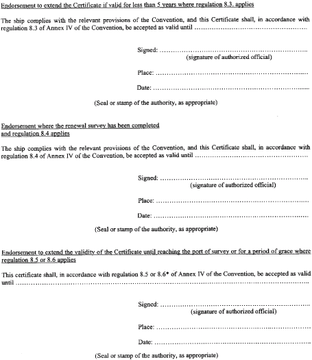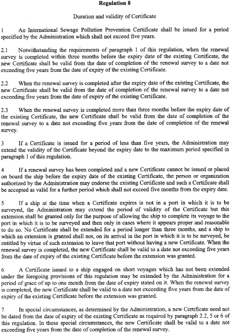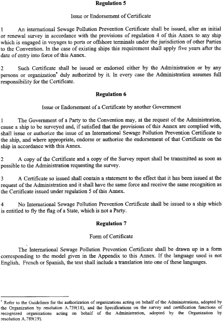 (e) an International Oil Pollution Prevention Certificate issued to an Australian ship under the law of a country other than Australia giving effect to Regulation 6 of Annex I .