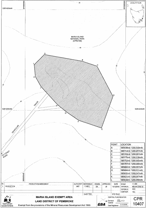 SCHEDULE 1 - Area of LandAll that area of land, in the land district of Pembroke, shown hatched and bounded by a heavy black line on Plan 10407 in the Central Plan Register, a reduced copy of which is set out, by way of illustration only, in Schedule 2 to this proclamation.