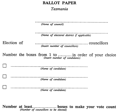 4. Ballot paper counted and exhausted(1) Every ballot paper, not rejected as informal, is to be counted in every count until it becomes exhausted, when it is to be rejected in all further counts.(2) If a candidate is excluded, any ballot paper counted to the candidate is exhausted if there is not indicated on it a consecutive preference for one or more unexcluded candidates.