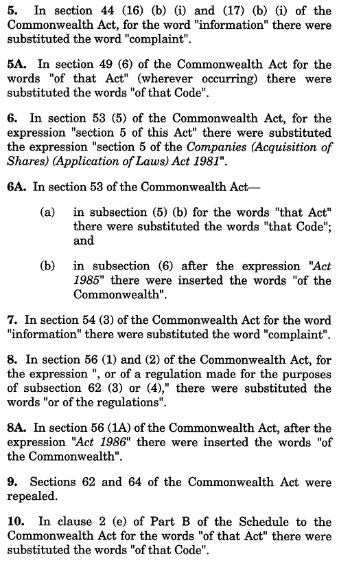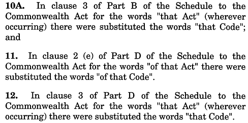 SCHEDULE 1 - Application of Provisions of Commonwealth Act[Schedule 1 Amended by No. 9 of 1982, s. 5 and Scheds. 5 and 6 ][Schedule 1 Amended by S.R. 1983 No. 279 ][Schedule 1 Amended by S.R. 1986 No. 127 ][Schedule 1 Amended by S.R. 1986 No. 144 ][Schedule 1 Amended by S.R. 1987 No. 102 ]