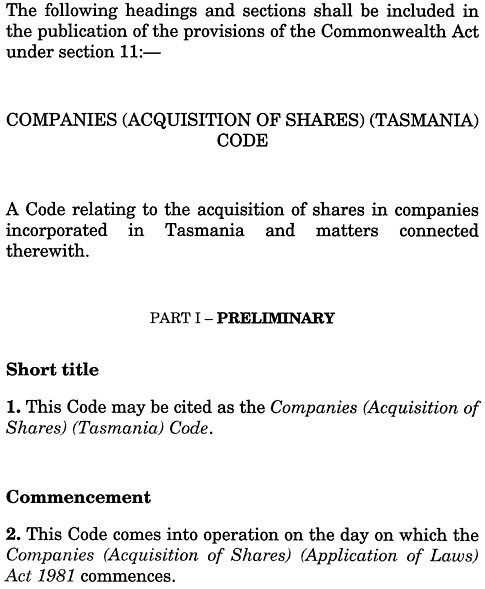11. Publication of Companies (Acquisition of Shares) (Tasmania) Code