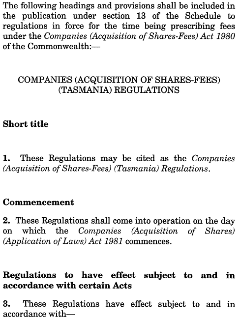13. Publication of Companies (Acquisition of Shares-Fees) (Tasmania) Regulations