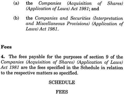 SCHEDULE 3 - Application of Regulations under Companies (Acquisition of Shares-Fees) Act 1980 of the Commonwealth