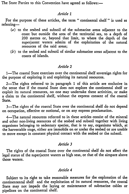 And whereas Australia is a party to the Convention of the Continental Shelf signed at Geneva on 29th April 1958 in which those rights are defined: