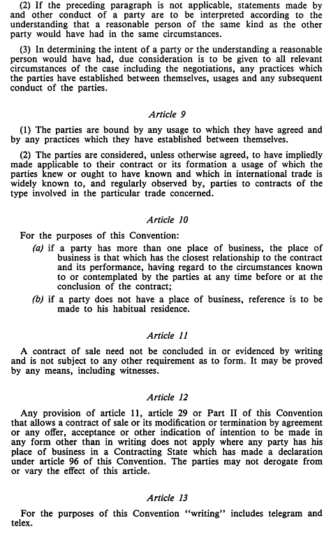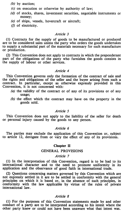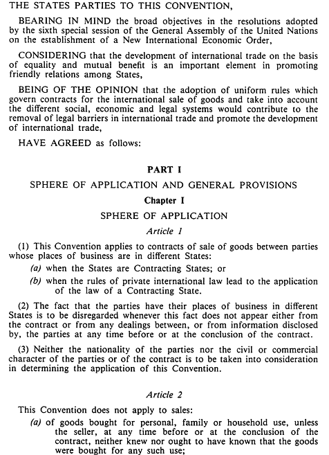 SCHEDULE 1 - United Nations Convention on Contracts for the International Sale of Goods
