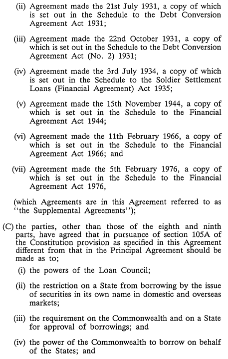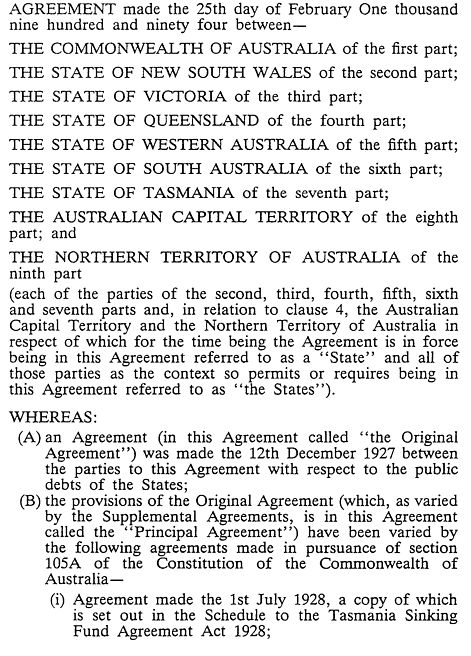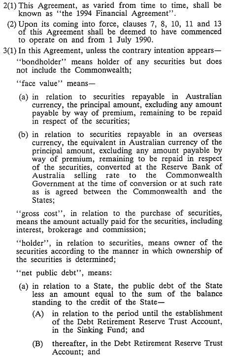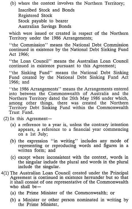 In this Act, unless the contrary intention appears,Agreement means the Agreement, a copy of which is set out in Schedule 1 .