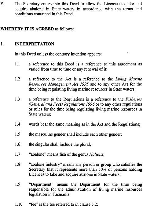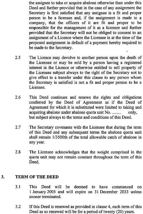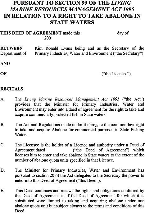 SCHEDULE 3 - Abalone Deed of Agreement[Schedule 3 Inserted by No. 14 of 2005, s. 6, Applied:06 May 2005]