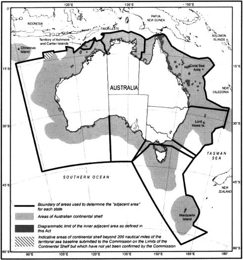 14. Adjacent areas(1) The adjacent area for New South Wales, Victoria, South Australia or Tasmania is so much of the area described in Schedule 2 to the Petroleum (Submerged Lands) Act 1967 of the Commonwealth in relation to that State that is within the outer limits of the continental shelf and includes the space above and below that area.(2) The adjacent area for Queensland is (a) so much of the area described in Schedule 2 to the Petroleum (Submerged Lands) Act 1967 of the Commonwealth in relation to Queensland that is within the outer limits of the continental shelf; and(b) the Coral Sea area (within the meaning of section 5A(7) of the Petroleum (Submerged Lands) Act 1967 of the Commonwealth) other than the territorial sea within the Coral Sea area; and(c) the areas within the outer limits of the territorial sea adjacent to certain islands of Queensland as determined by proclamation on 4 February 1983 under section 7 of the Seas and Submerged Lands Act 1973 of the Commonwealth; and(d) the space above and below the areas described in paragraphs (a) , (b) and (c) .(3) The adjacent area for Western Australia is so much of the area described in Schedule 2 to the Petroleum (Submerged Lands) Act 1967 of the Commonwealth in relation to Western Australia that and includes the space above and below that area.(a) is within the outer limits of the continental shelf; and(b) is not within Area A of the Zone of Cooperation (4) The adjacent area for the Northern Territory is (a) so much of the area described in Schedule 2 to the Petroleum (Submerged Lands) Act 1967 of the Commonwealth in relation to the Northern Territory that (i) is within the outer limits of the continental shelf; and(ii) is not within Area A of the Zone of Cooperation; and(b) the adjacent area for the Territory of Ashmore and Cartier Islands (within the meaning of section 5A(3) of the Petroleum (Submerged Lands) Act 1967 of the Commonwealth) other than the territorial sea within that area; and(c) the space above and below the areas described in paragraphs (a) and (b) .(5) The adjacent area for Norfolk Island is the area the boundaries of which are and includes the space above and below that area, but does not include any area in the adjacent area for any other State.(a) the baseline for Norfolk Island; and(b) the outer limit of the continental shelf adjacent to the coast of Norfolk Island (6) However, the adjacent area for a State does not include any area inside the limits of any State or Territory.