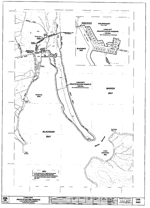 6 September 1999(a) declare the land specified in Schedule 1 to this proclamation to be reserved land in the class of private nature reserve; and(b) give the name Long Spit Private Nature Reserve to that reserved land; and(c) declare that this proclamation does not have effect until it is registered in accordance with section 16A of that Act.