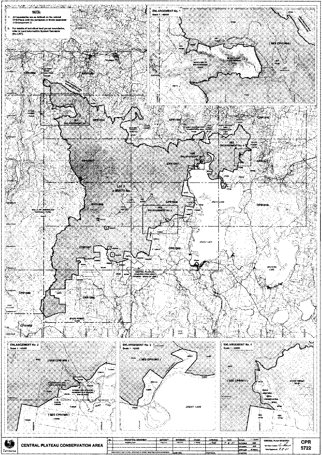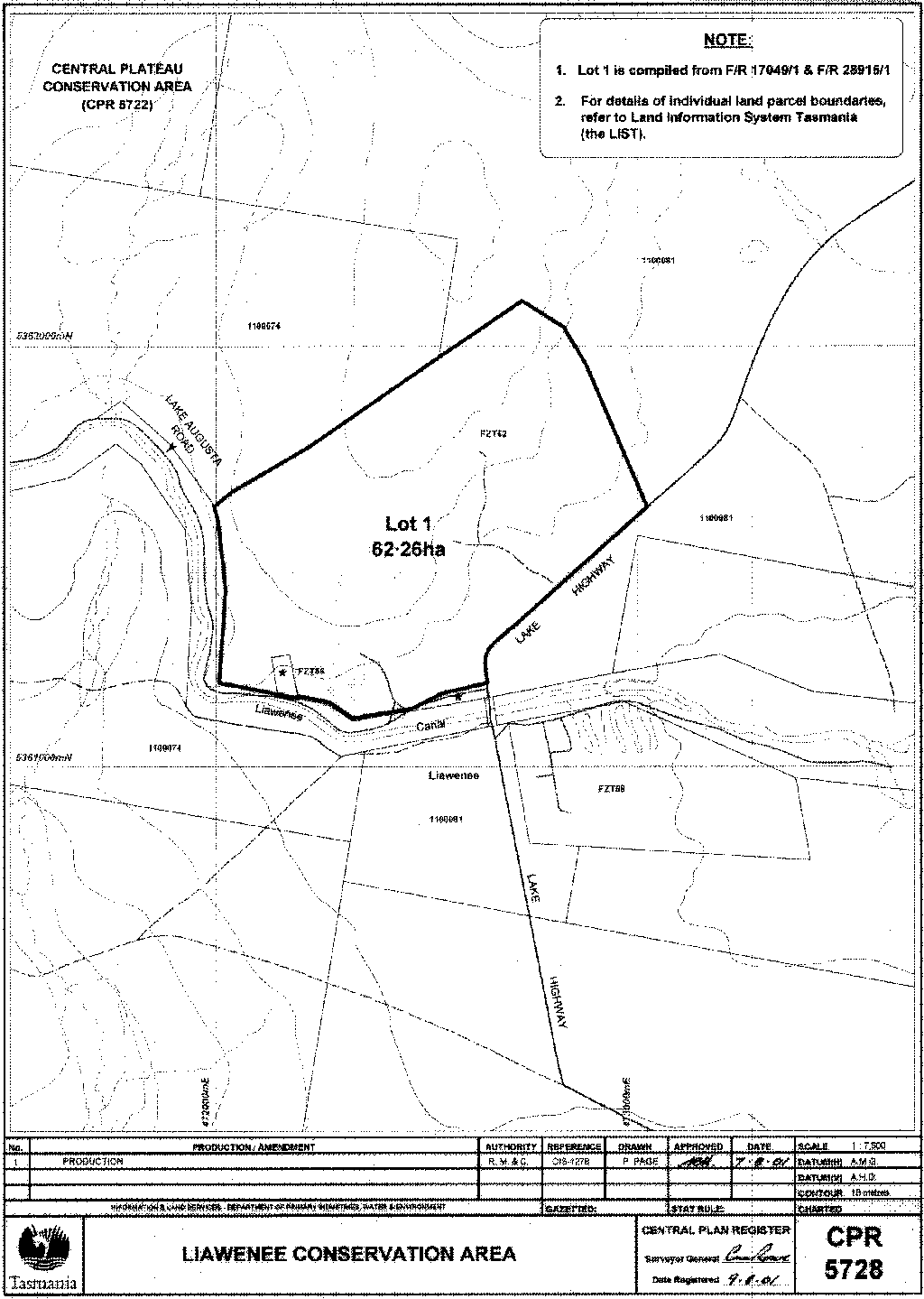 PART 1 - Central Plateau Conservation AreaAll that area of land comprising about 90 870 hectares shown bounded by a heavy black line on Plan Number 5722 in the Central Plan Register a reduced copy of which is set out, by way of illustration only, in Part 1 of Schedule 2 to this proclamation.