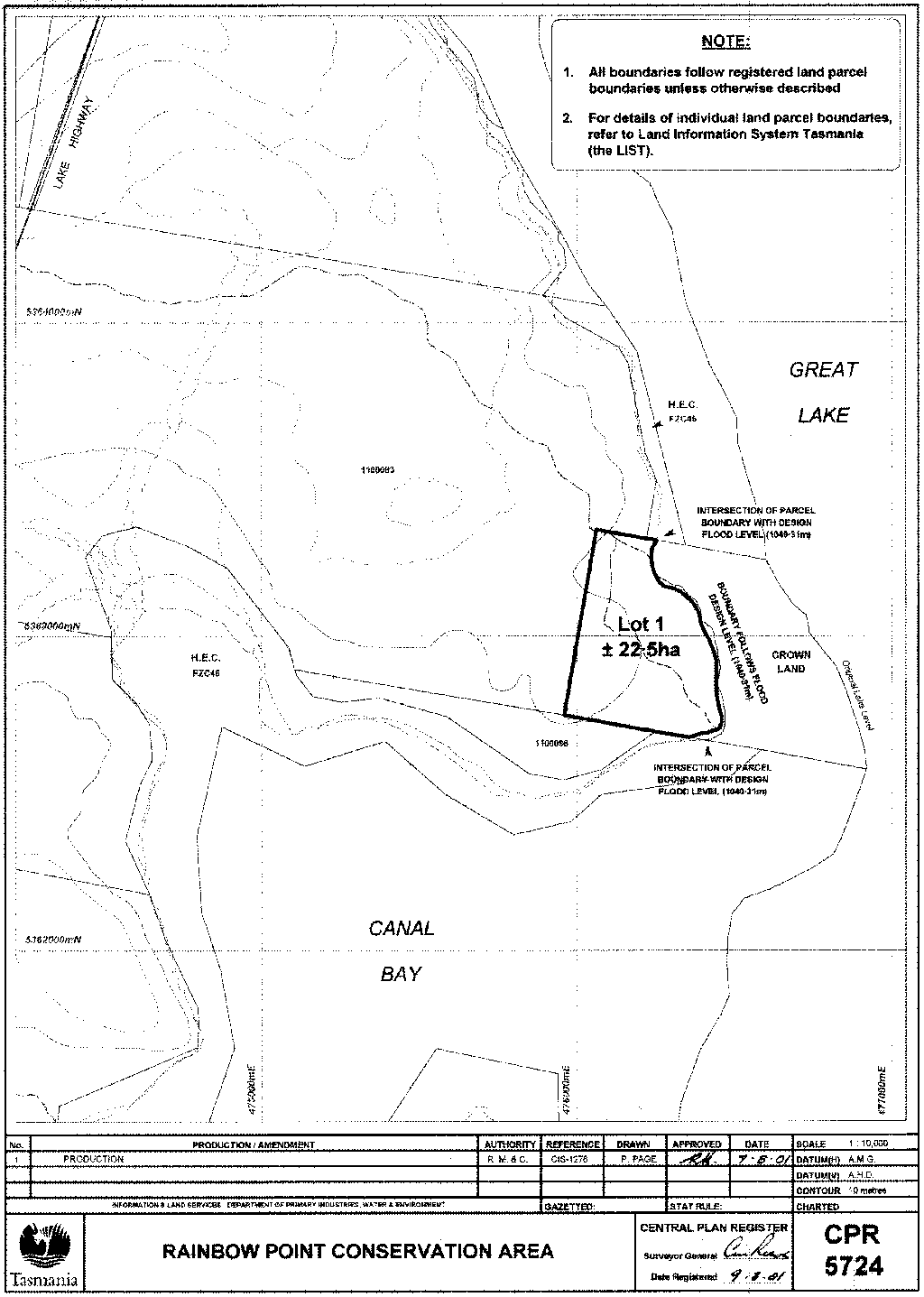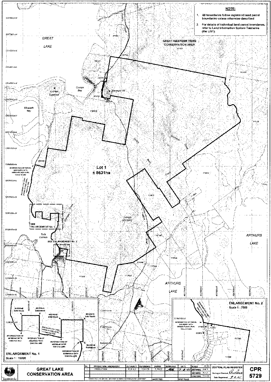 PART 3 - Great Lake Conservation AreaAll that area of land comprising about 8 631 hectares shown bounded by a heavy black line on Plan Number 5729 in the Central Plan Register a reduced copy of which is set out, by way of illustration only, in Part 3 of Schedule 2 to this proclamation.