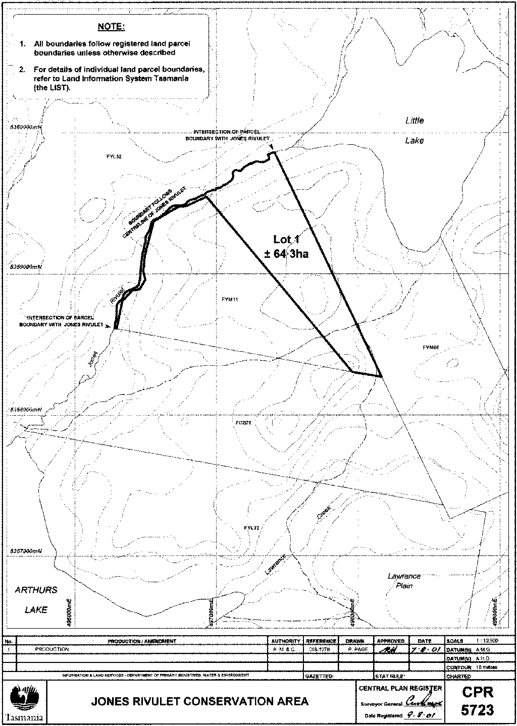 PART 4 - Jones Rivulet Conservation AreaAll that area of land comprising about 64.3 hectares shown bounded by a heavy black line on Plan Number 5723 in the Central Plan Register a reduced copy of which is set out, by way of illustration only, in Part 4 of Schedule 2 to this proclamation.